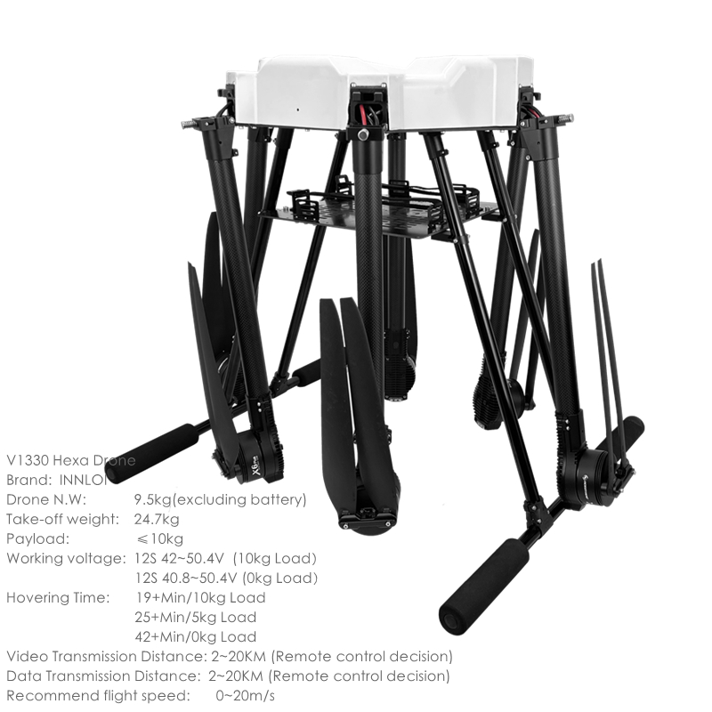 INNLOI V1330 1330mm Hexacopter Foldable Drone Carbon Fiber Folding Heavy Load Frame For X6 Plus Motor 2480 FOC Propulsion System