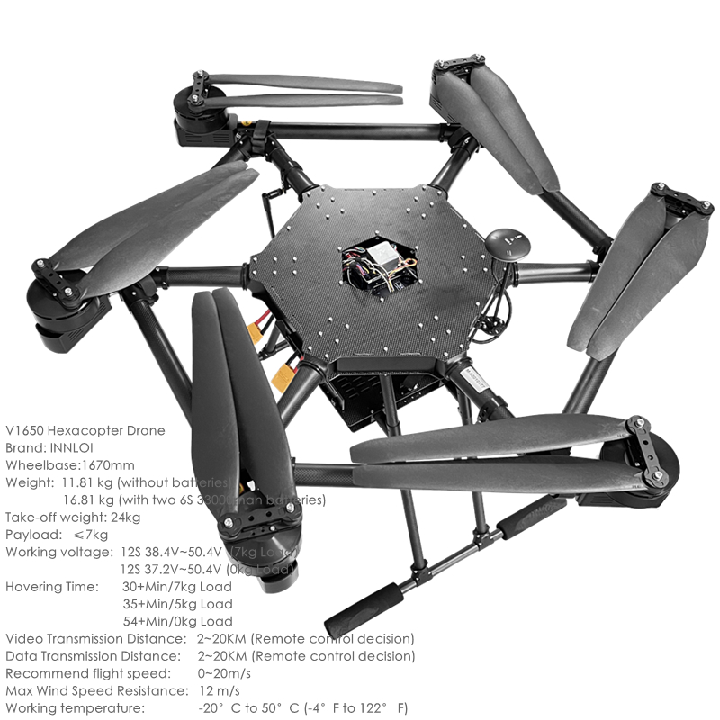 INNLOI V1650 1670mm Hexacopter Foldable Drone Carbon Fiber Folding Heavy Load Frame For 8318 Motor 32inch Propeller Propulsion System