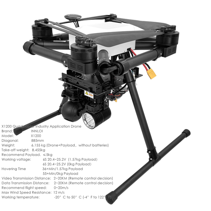 INNLOI X1200 Cross Folding Drone Quadcopter For Payload 3kg 5kg 6215 Motor 22 24inch Propeller Industry Drone UAV