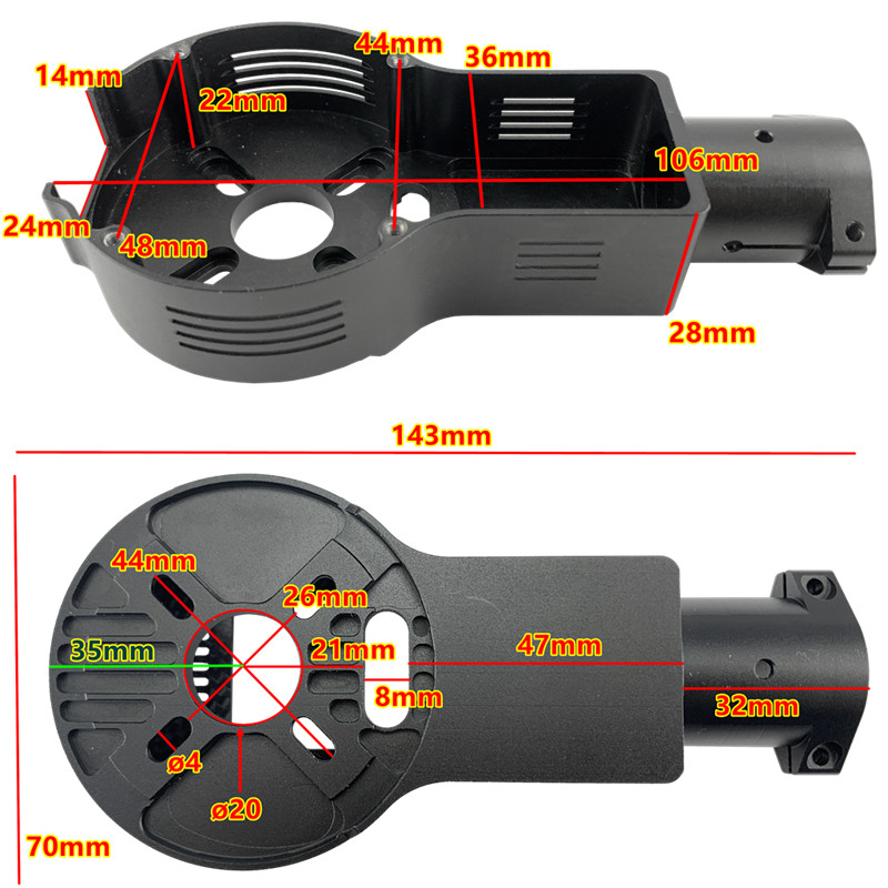 8. The aluminum alloy connector has a hole, you need to open the hole in the arm tube by yourself to install it.* Motor mount does not include motor, ESC, LED light.