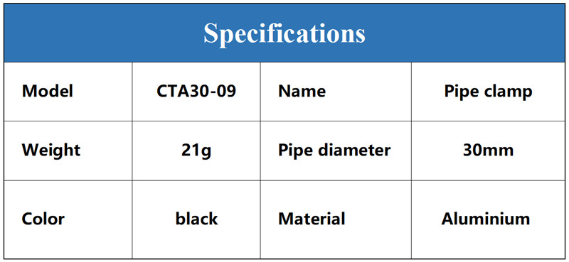 1. CTA30-09 aluminum pipe clampø 30mm for pipe or carbon fiber tube or motor mount.
